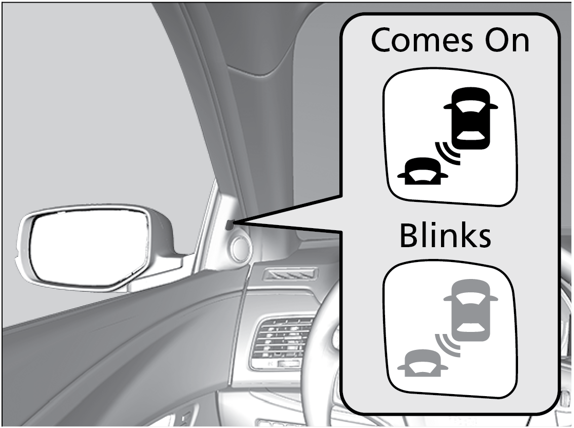 Alerts you to a detected vehicle in your left or right blind spot while driving between 20 mph (32 km/h) and 100 mph (160 km/h). When the system detects vehicles approaching from behind in adjacent lanes, the appropriate indicator comes on for a few seconds, providing assistance when you change lanes.