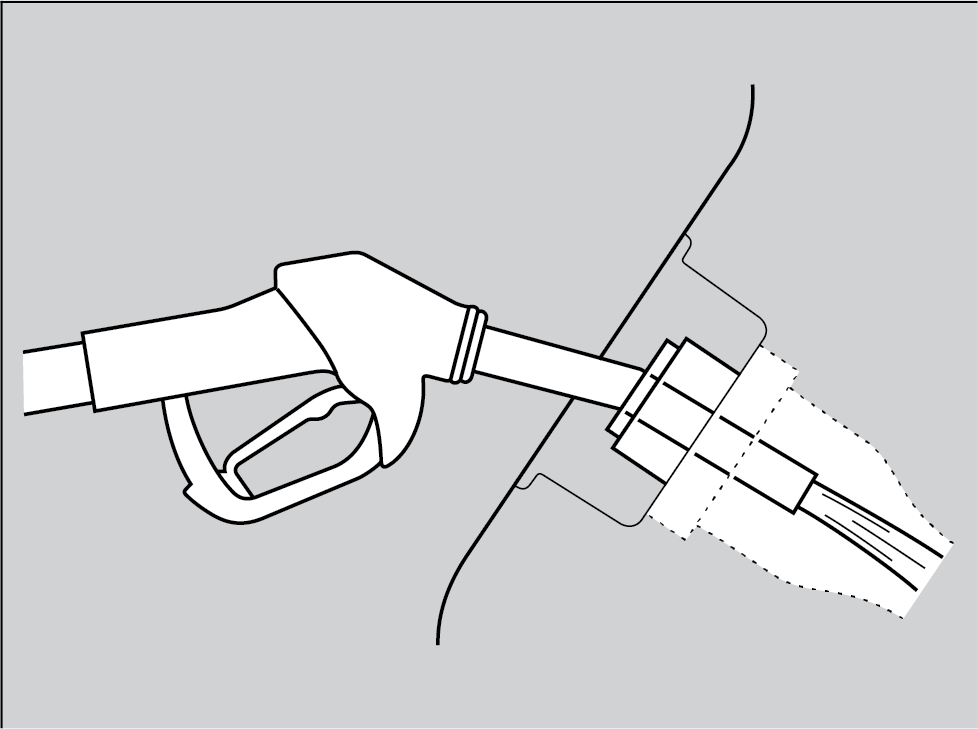 Insert the filler nozzle fully. When the tank is full, the nozzle clicks off automatically. Wait about 5 seconds before removing the filler nozzle.