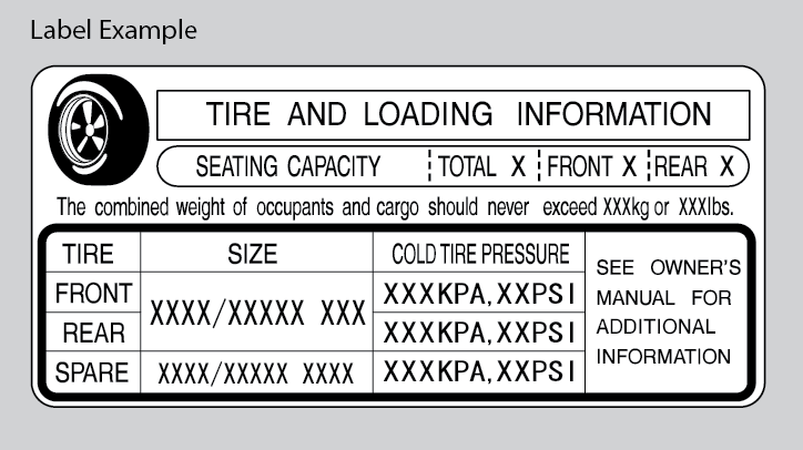 - Locate the statement “The combined weight of occupants and cargo should never exceed XXX kg or XXX lbs.” on your vehicle’s placard.